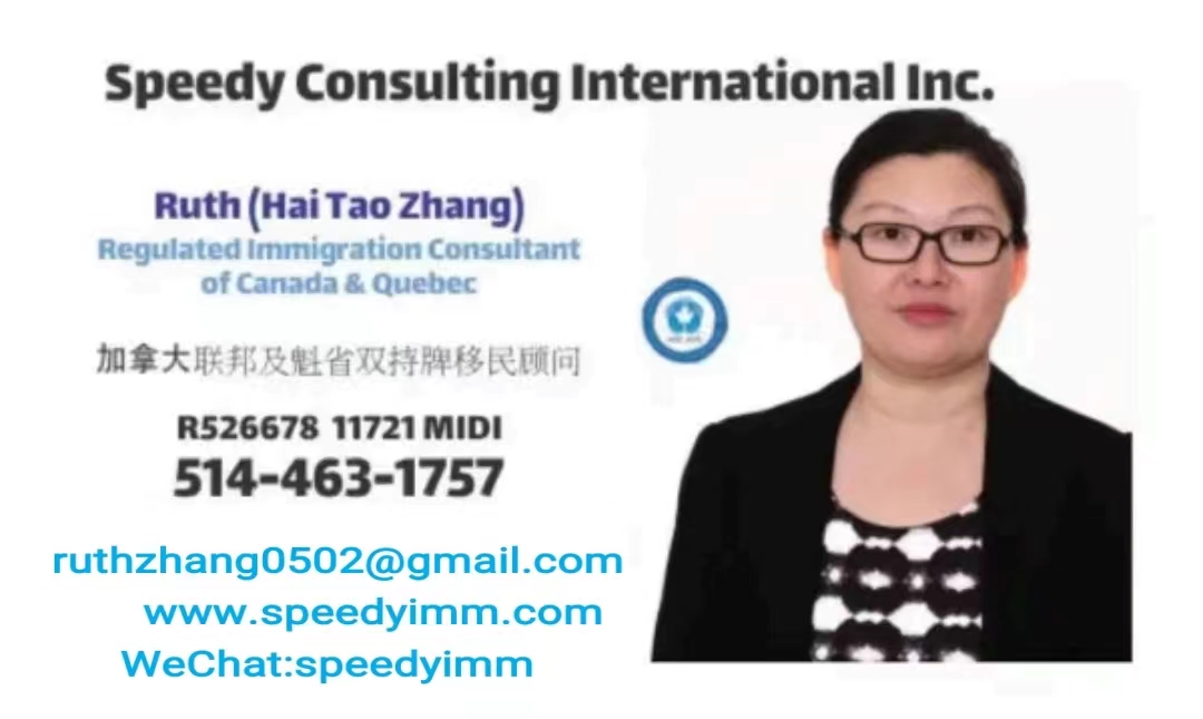 我是Hai Tao Zhang(女),加拿大联邦及魁省双持牌移民顾问(联邦持牌号R526678,魁省持牌号11721),验证邮箱: RUTHZHANG0502@gmail.com 我们竭诚为您服务~